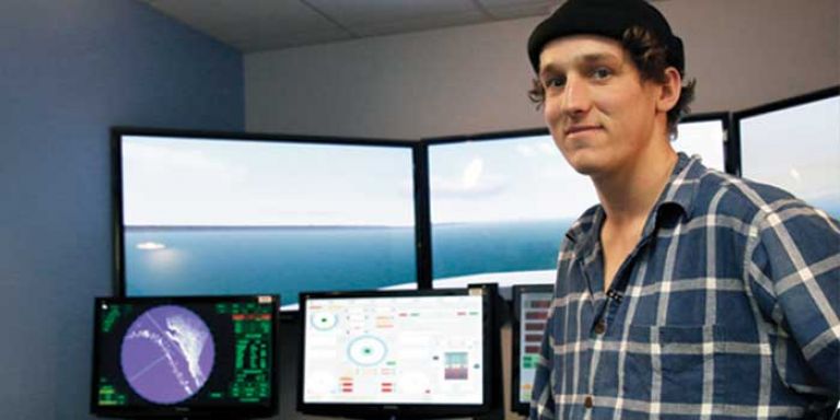 You can drive a container ship, or our final exam for nav aids was a 22mtr high-speed ferry, 50mtr fishing boats and the lecturers can change all the weather, all the tides, all the effects. It’s pretty cool. ”
