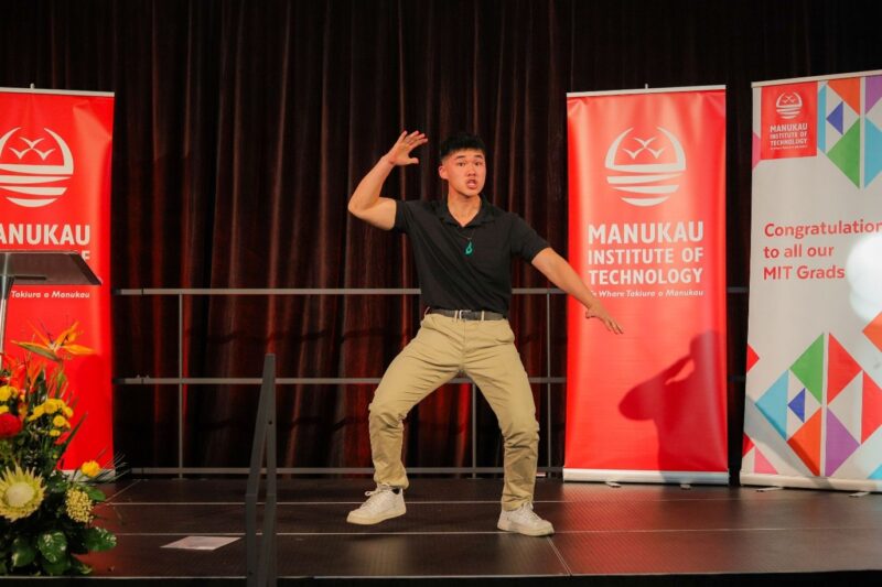 MIT’s Matua Vince Hapi set the tone at the start of each ceremony with a karakia and led the audience in waiata that filled the atrium.