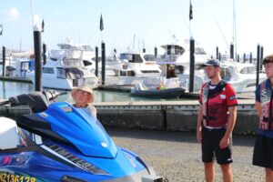 Superyacht students at Westhaven Marina getting a briefing before learning how to ride jet skis.