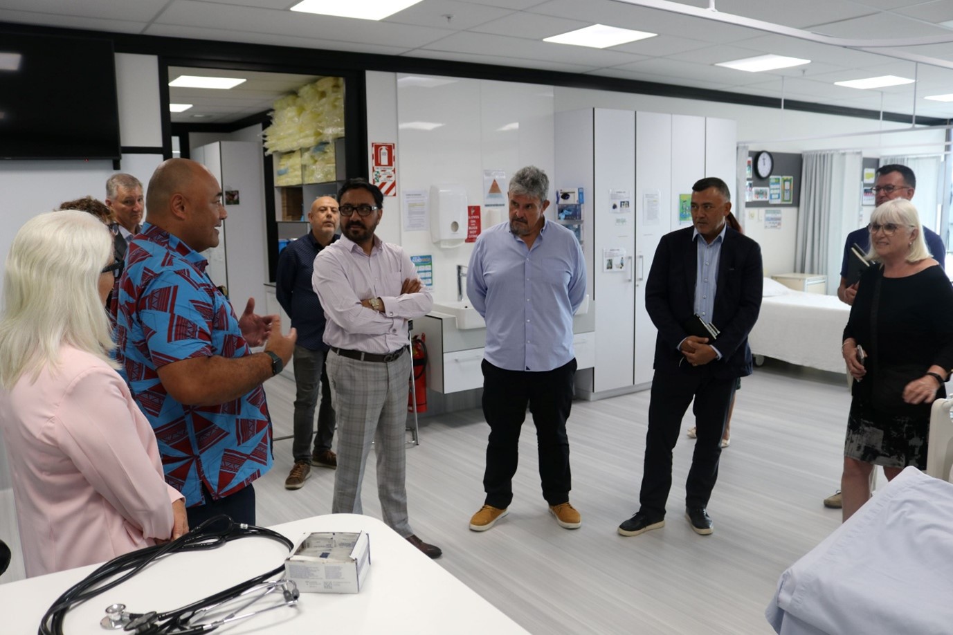 Peseta Sam and MIT Head of Nursing Assoc Prof Deb Rowe (left) show council the nursing training facility at Manukau Campus